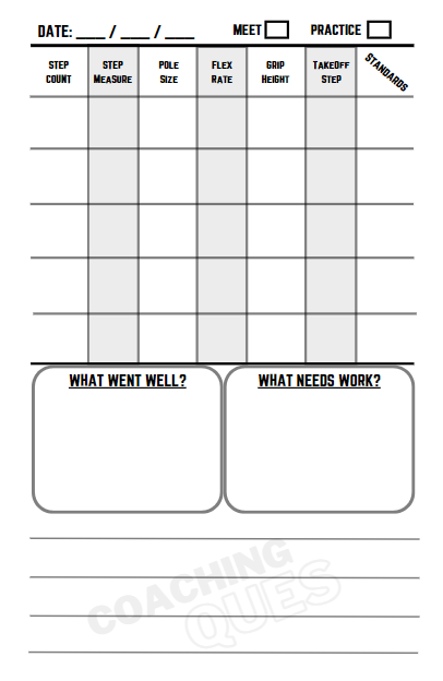 The aim of this journal is to provide a logical outlined space that vaulters of all levels can utilize to help themselves beyond the bar in their personal pole vaulting journey. As you may have already found in your own training, successful pole vaulting requires the assessment of many variables. Things like step count, pole size, grip height, and takeoff step measure, must all come together in just the right way to have a successful jump. It can become rather difficult to keep track of all of this information in your head. We at SkyChasers firmly believe in utilizing journaling as a way to help process and organize all of this information for both practices and meets.